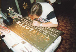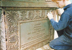 | Schriftplatten an der unteren Säulenbasis angebaut | Schrift und Sterne gereinigt und vergoldet |