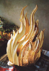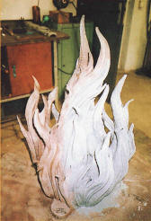 | Flammengebilde der Bekrönung für Kandelaber gereinigt. Der Kandelaber wurde mit Frianzink versiegelt. Nach historischen Merkmalen wurde die Farbbehandlung in Bronzegrün ausgeführt. | |